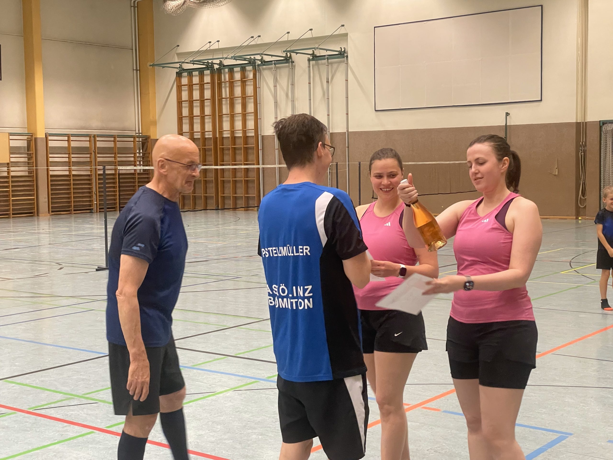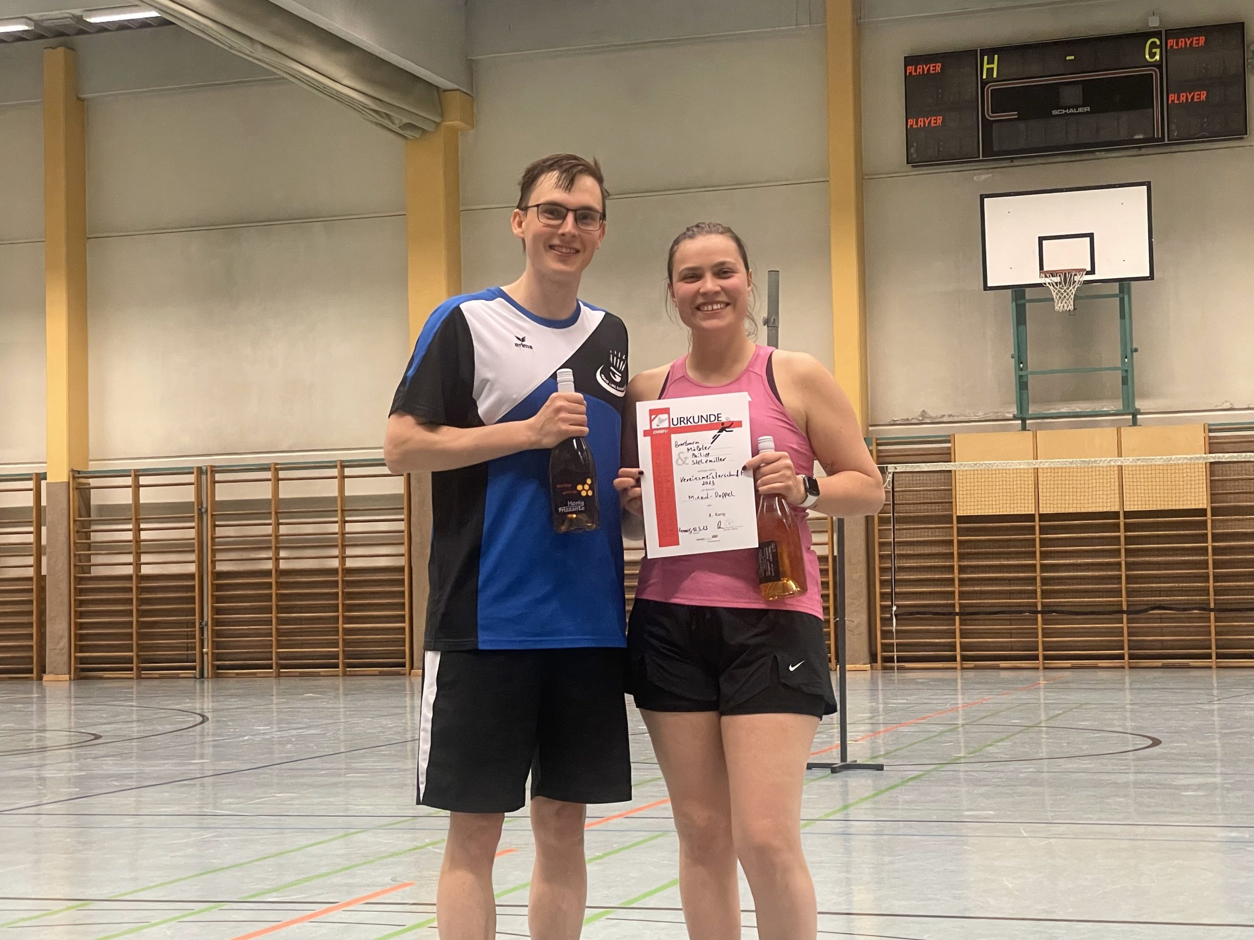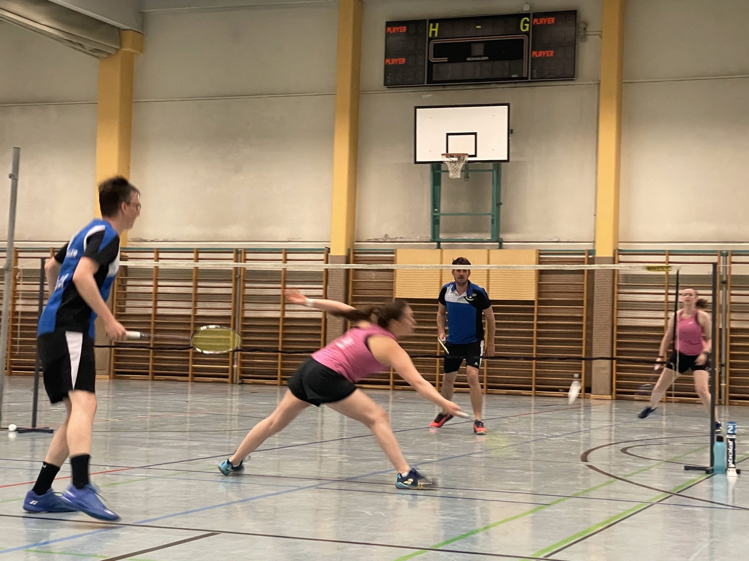 Auch im Mixed-Doppel führte an diesem Tag kein Weg an der in Top-Form agierenden Babsi vorbei, und so gewannen Barbara und Philipp gegen Hannah und Michael in 2 Sätzen 21:16 – 21:14.