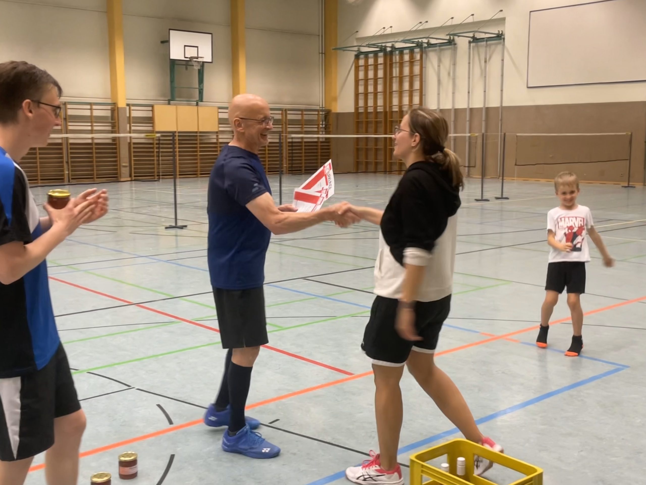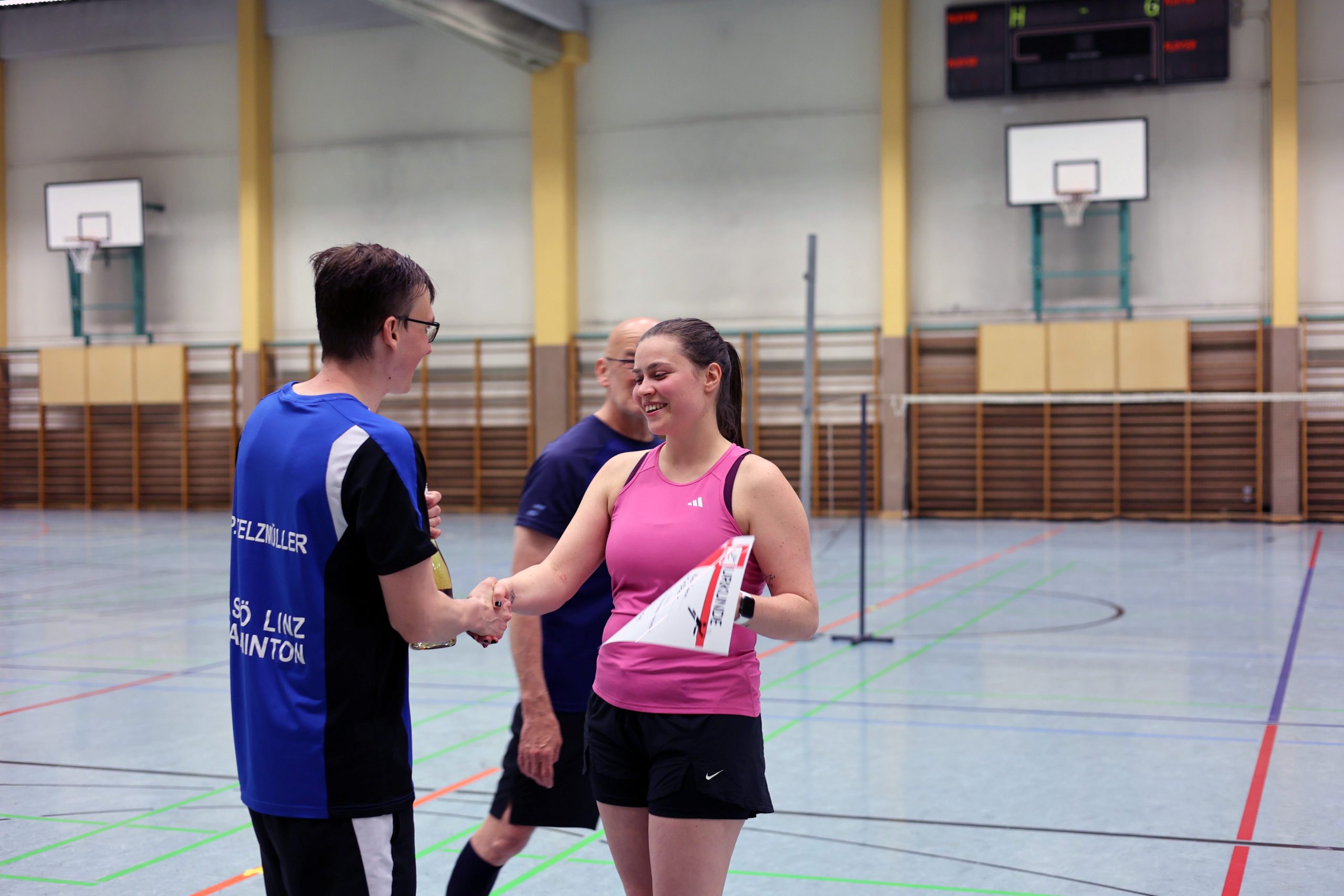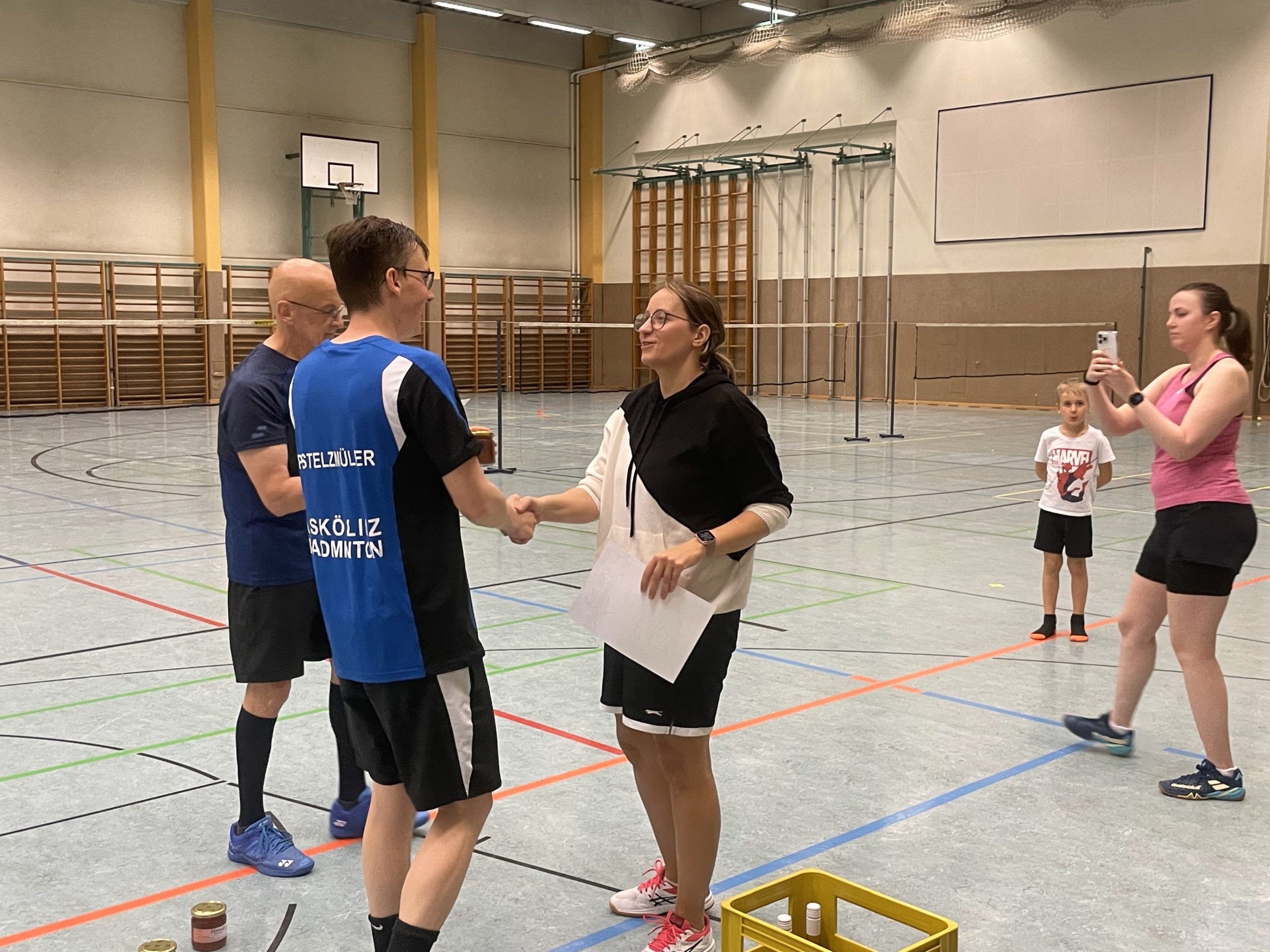 Auch im Mixed-Doppel führte an diesem Tag kein Weg an der in Top-Form agierenden Babsi vorbei, und so gewannen Barbara und Philipp gegen Hannah und Michael in 2 Sätzen 21:16 – 21:14.