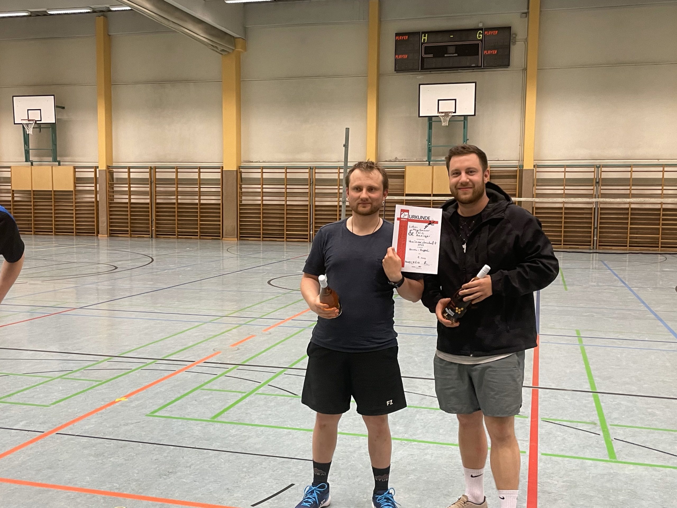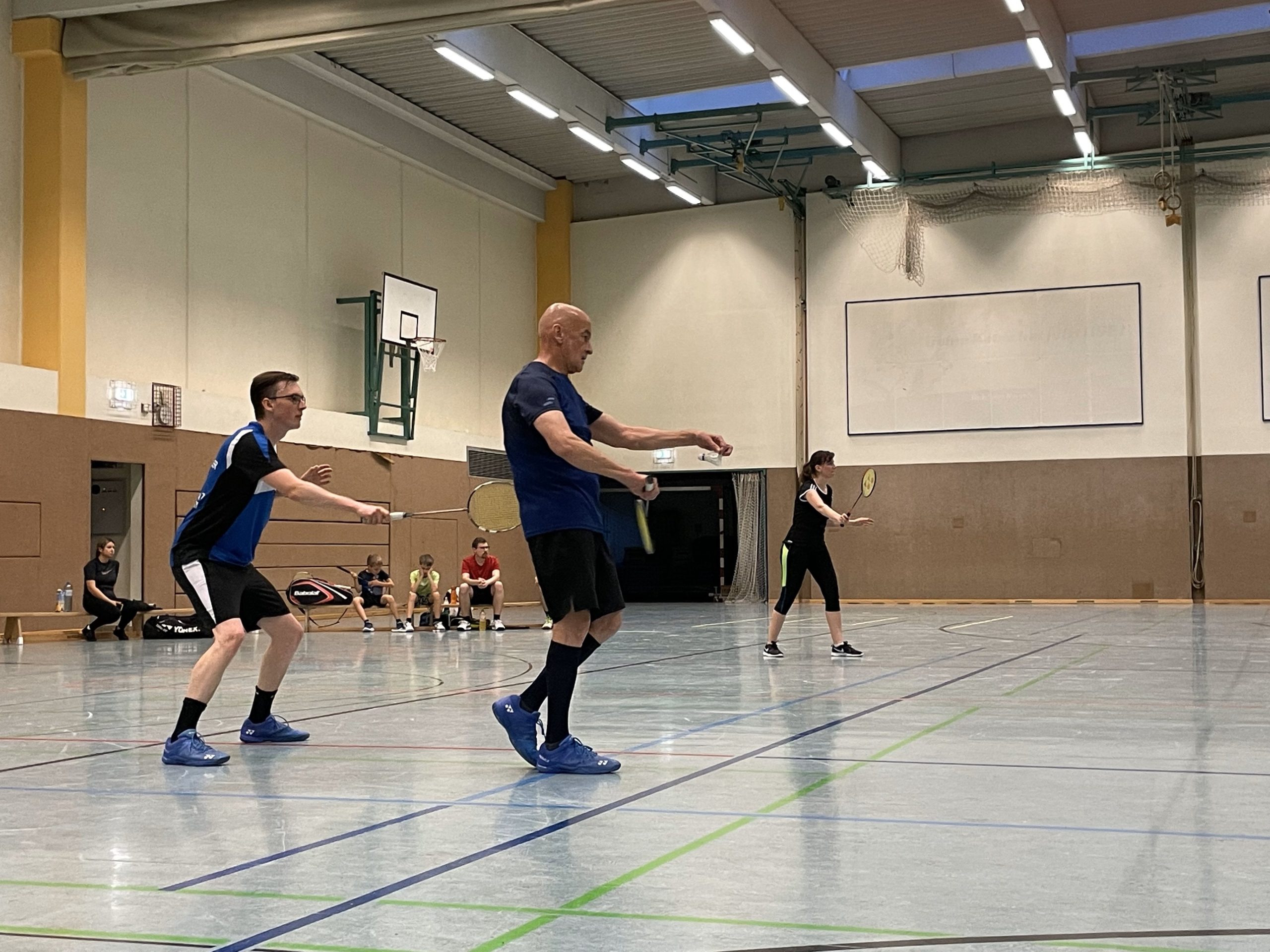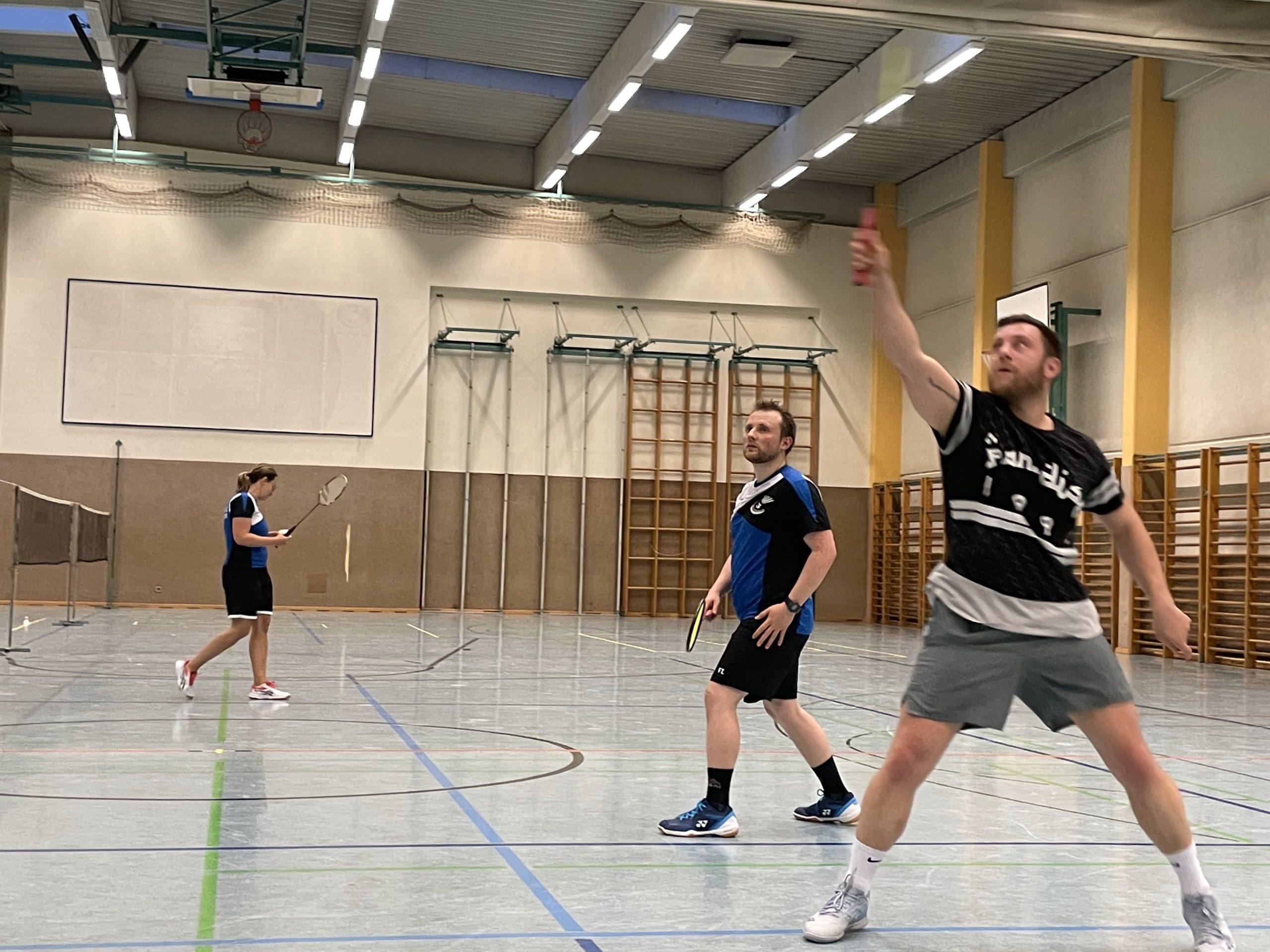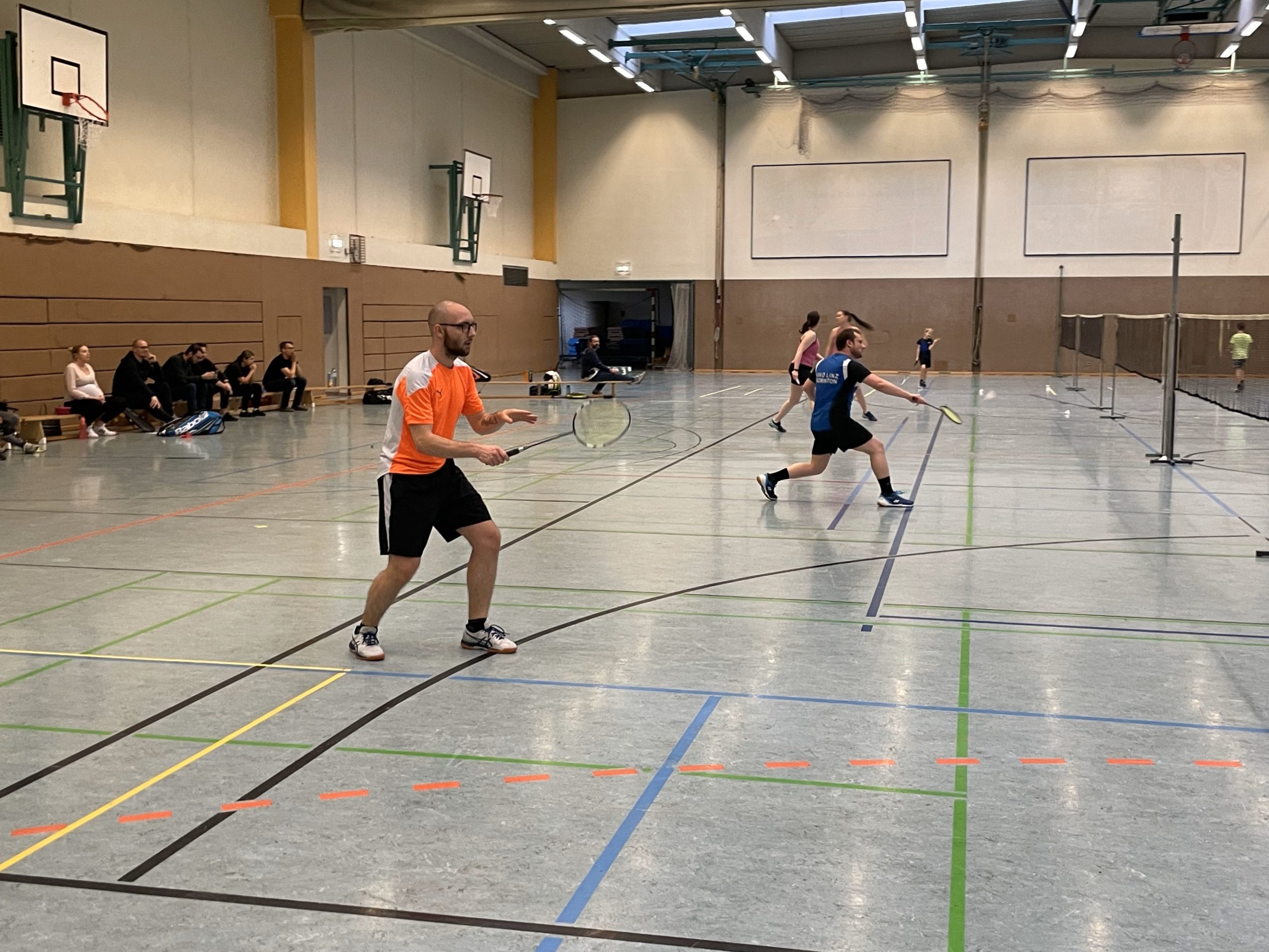 Im Herrendoppel nahmen die Routiniers Philipp / Manfred mit druckvollem Powerplay, Lukas und Felix den zweiten Satz ab. Im dritten Satz war dann jedoch die Luft raus, und so triumphierten letztlich auch hier die Favoriten mit 21:15 – 10:21 – 21:8.